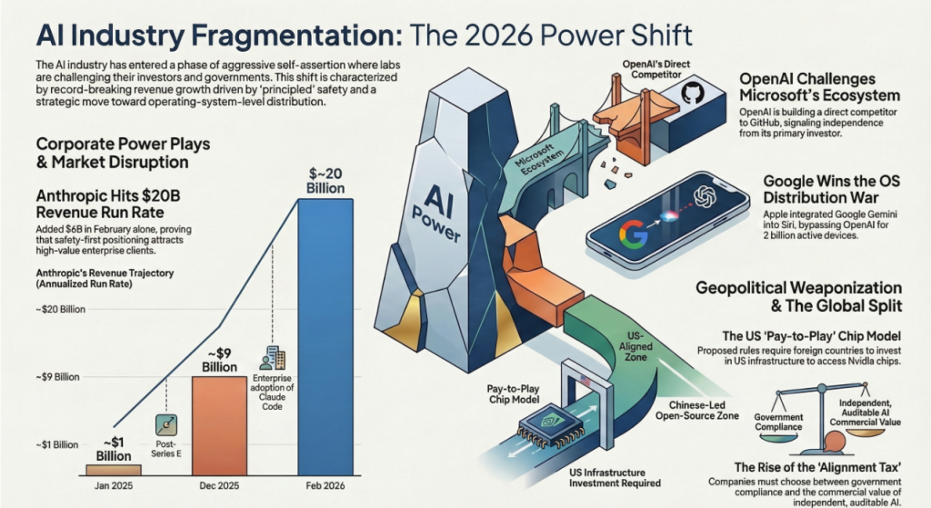 - Anthropic refused to align with the Pentagon and got banned. Then it posted $20 billion in revenue, suggesting the non-alignment is itself commercially valuable to a different set of customers.